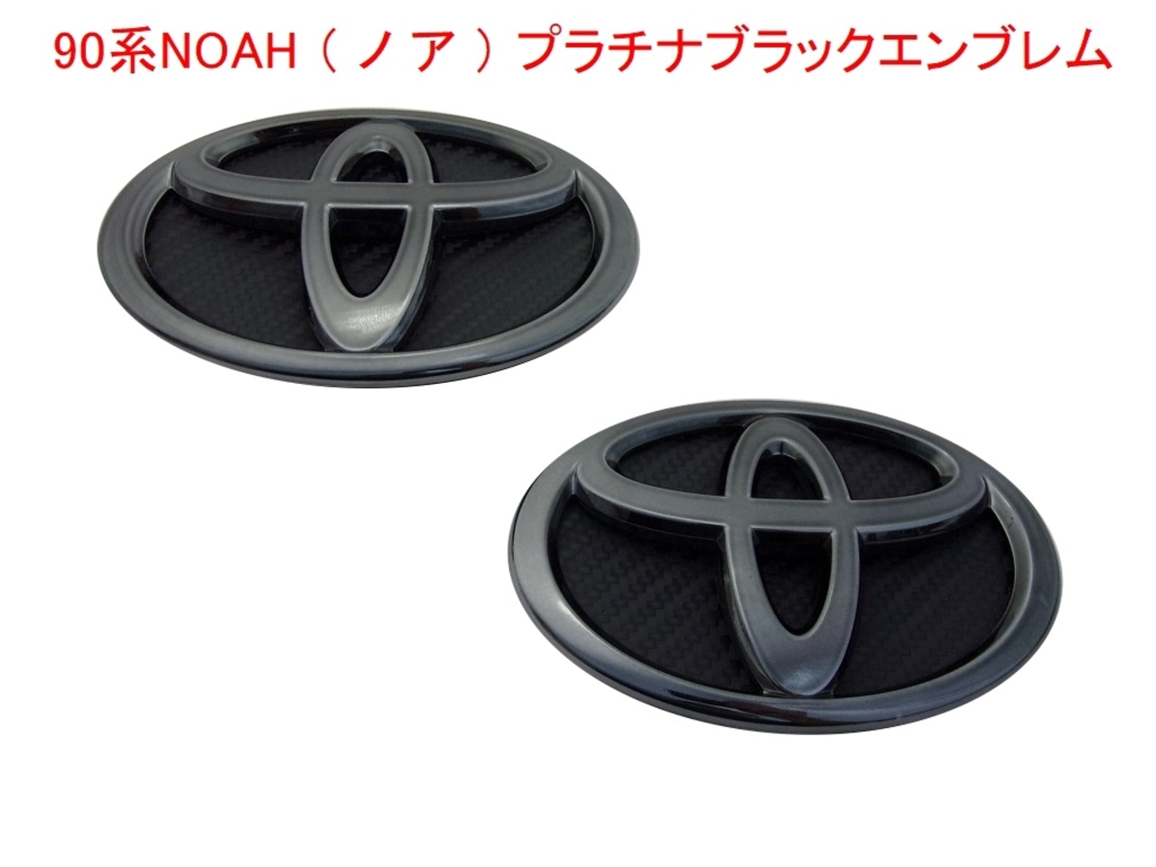 90系NOAH (ノア) プラチナブラックエンブレム フロント&リア2点セット(フロント&リア ブラックカーボン柄背景シート付き)