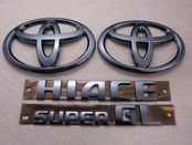 200系ハイエース HIACE (ワイドボディー用) プラチナブラックエンブレム フロント&リア4点セット
