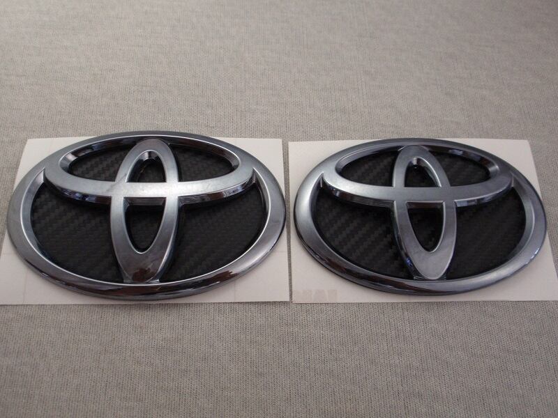 80系VOXY (ヴォクシー) プラチナブラックエンブレム フロント&リア2点セット(フロント&リア ブラックカーボン柄背景シート付き)