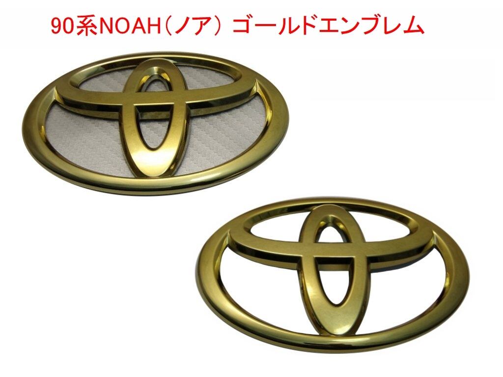 90系NOAH (ノア) プレミアム ゴールドエンブレム フロント&リア2点セット (フロント シルバーカーボン柄背景シート付き)