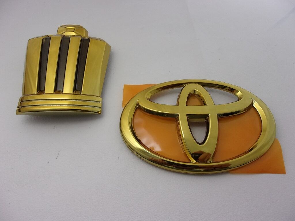 こちらの商品は、トヨタ純正新品クロームメッキエンブレムをベースに、独自の溶剤と加工方法により、クロームメッキの輝きを活かしたゴールドエンブレムに仕上げられた商品となります。
