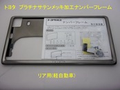 こちらの商品は、プラチナサテンメッキ調に、トヨタ純正新品ナンバーフレーム(デラックスタイプ)を塗装加工された商品となります。
