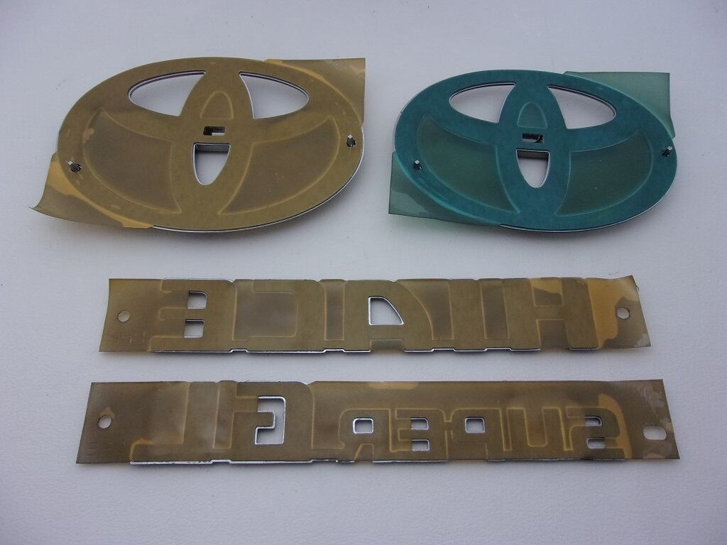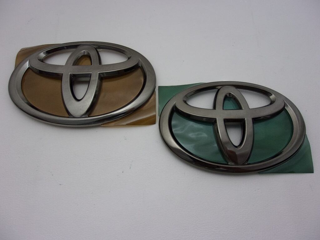 こちらの商品は、トヨタ純正新品エンブレム・ナンバーフレーム(デラックスタイプ)をベースに、独自の溶剤と、加工方法を用いた、ブラウン系(ダーク) プライムブラックエンブレム・ナンバーフレームとなります。