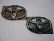 こちらの商品は、純正新品エンブレムをベースに、独自の溶剤・加工方法により、200系ハイエース (ダーク)プライムエディションの少しブラウンがかったグリル色に色味を似せた「光沢のあるブラウン系ブラック」のプライムブラックエンブレムに仕上げられた商品となります。