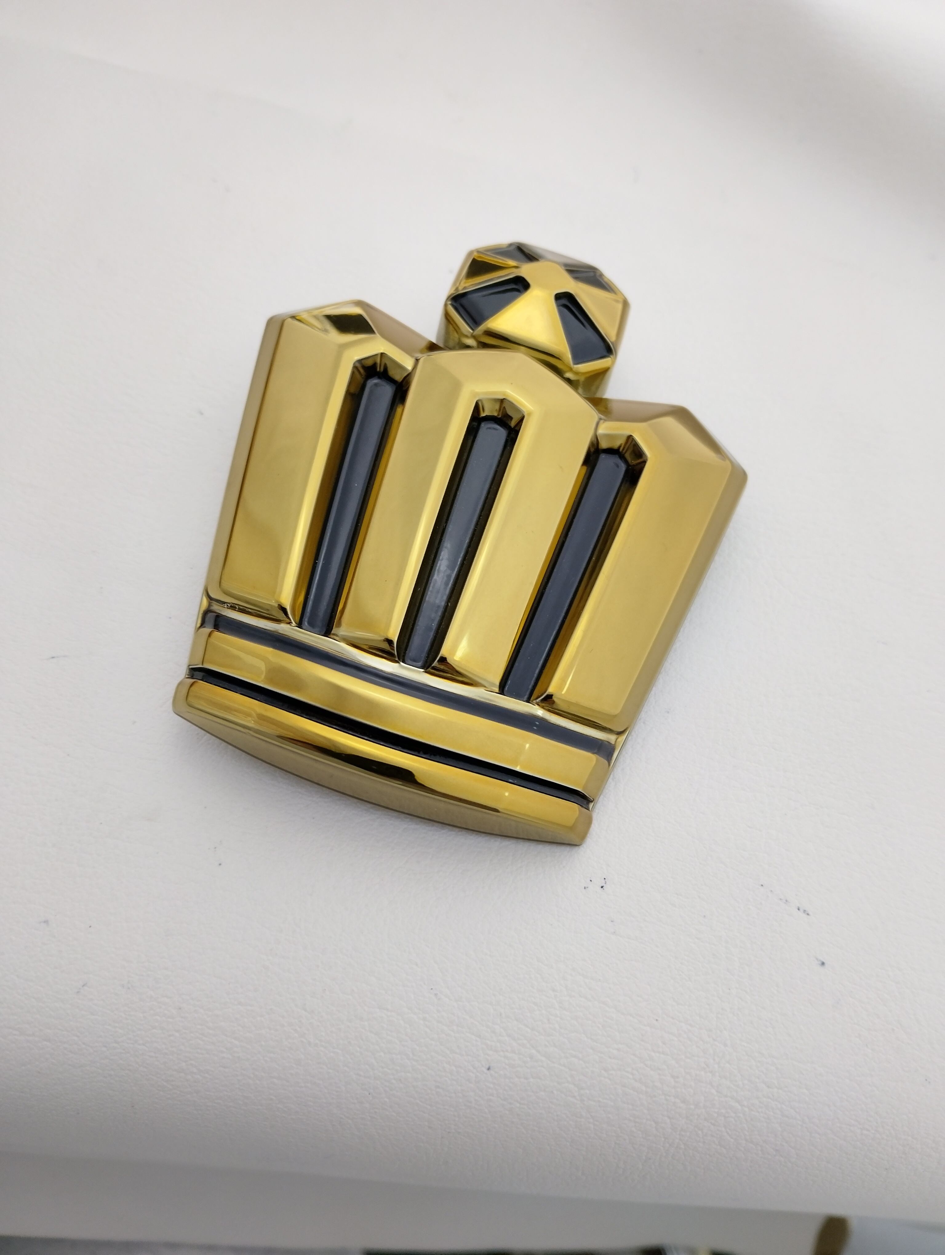 こちらの商品は、純正・新品クロームメッキエンブレムをベースに、独自の溶剤と加工を施し、クロームメッキの輝きを活かした、ゴールドエンブレムとなります。