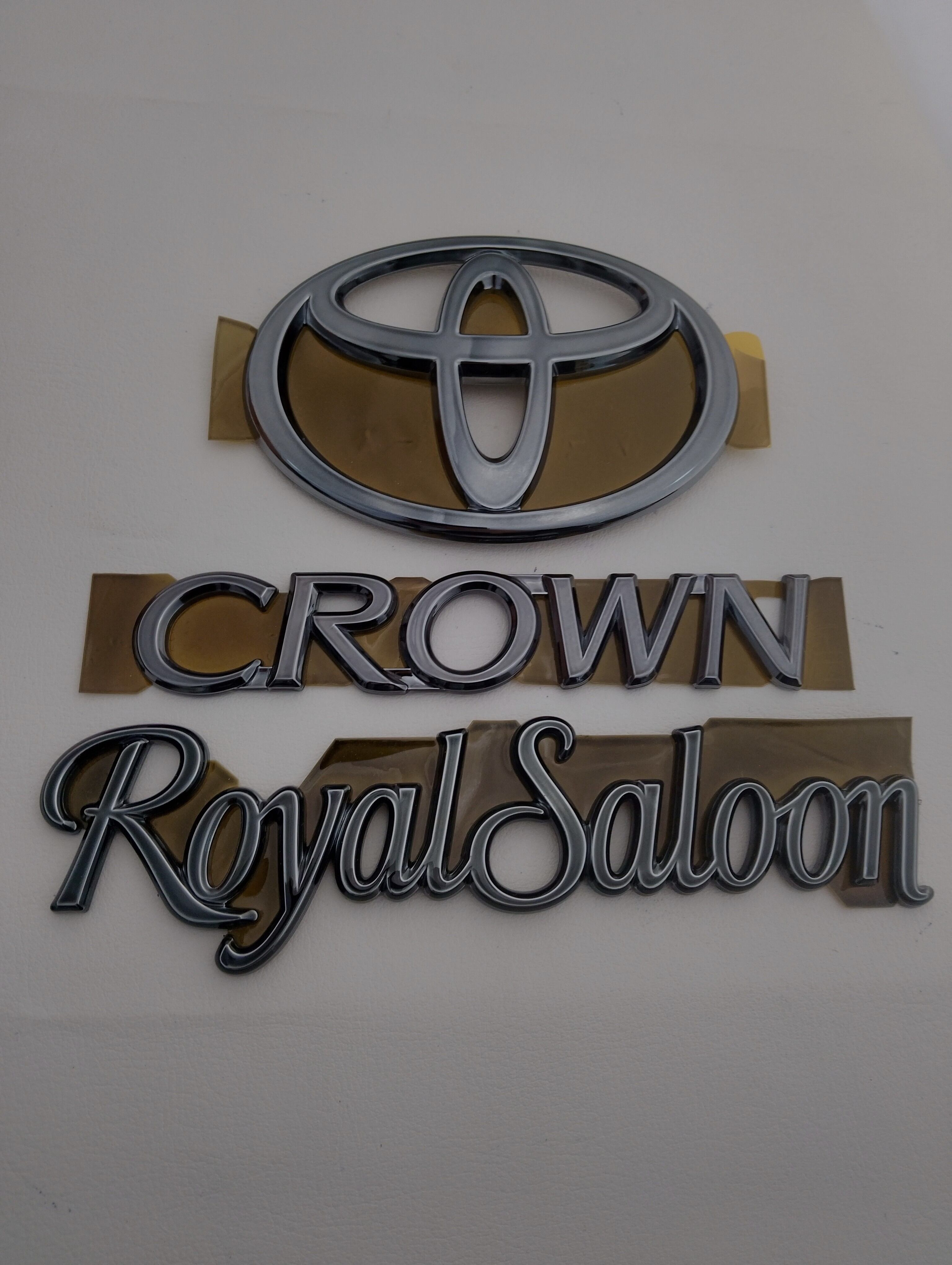 トヨタ 18系クラウン ロイヤルサルーン (CROWN ROYALSALOON )プラチナブラックエンブレム フロント&リア3点セット