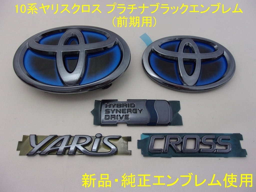 【新品・純正エンブレムを使用】 トヨタ 10系ヤリス クロス(YARiS CROSS) プラチナブラックエンブレム フロント&リア5点セット ( 前期 ハイブリッド車用 )