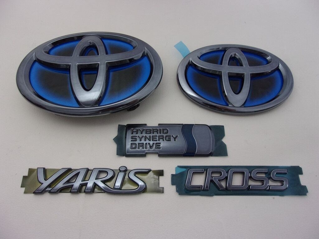 トヨタ 15系ヤリス クロス(YARiS CROSS) プラチナブラックエンブレム フロント&リア5点セット ( 前期 ハイブリッド車用 【ガソリン車にも取付け出来ます】)