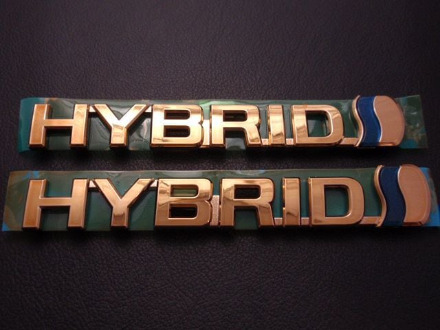 トヨタ ZVW30系プリウス(PRIUS) ゴールドエンブレム HYBRID文字(左右セット)