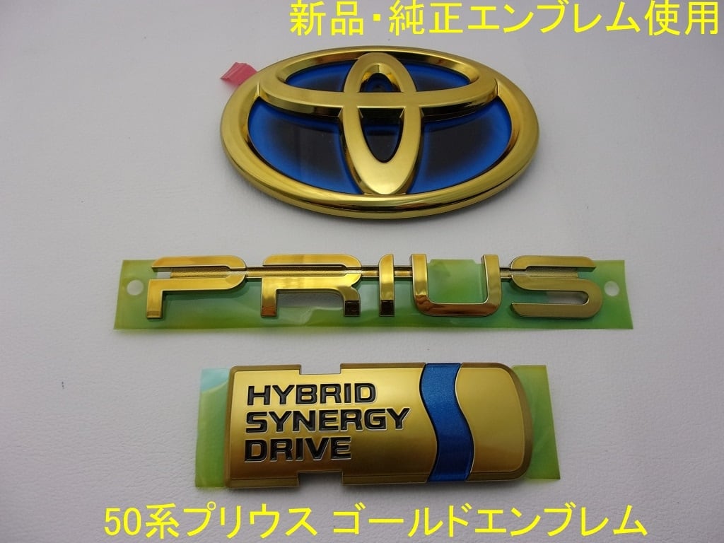 【新品・純正エンブレムを使用】 ◆ トヨタ 50系・51系・55系 プリウス(PRIUS) ゴールドエンブレム リア 3点セット(後期用)
